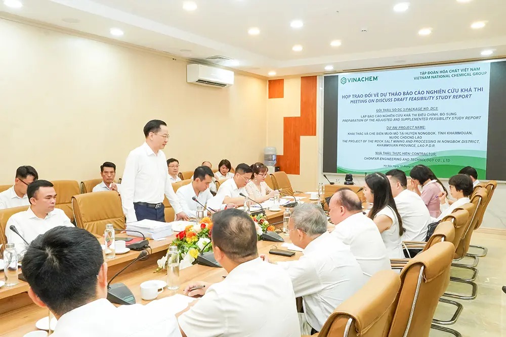 On September 18, 2025, at the headquarters of Vietnam National Chemical Group (Vinachem), Mr. Nguyễn Hữu Tú, the General Director and CEO of Vietnam National Chemical Group(Vinachem), chaired a working session with Chonfar Engineering and Technology Co., Ltd. (CHONFAR) to discuss the implementation of Package DC3: Adjustment and supplement to the Feasibility Study report – Potassium salt mine exploitation and processing project in the Lao PDR.