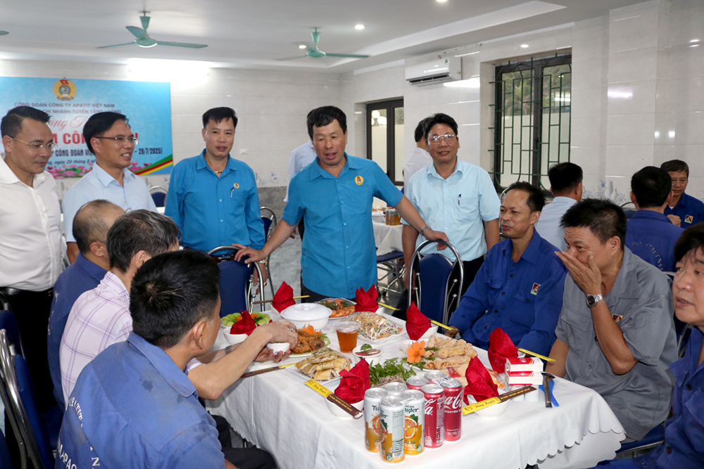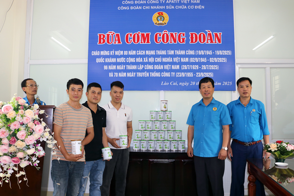 Hưởng ứng Hướng dẫn của Tổng Liên đoàn Lao động Việt Nam, Công đoàn Công Thương Việt Nam và Công đoàn Công nghiệp Hóa chất Việt Nam; đồng thời thiết thực chào mừng các ngày lễ lớn trong năm 2025 và hướng tới kỷ niệm 70 năm Ngày truyền thống Công ty, Ban lãnh đạo cùng Công đoàn Công ty TNHH MTV Apatit Việt Nam đã phối hợp tổ chức “Bữa cơm Công đoàn” cho toàn thể gần 1,9 nghìn cán bộ, đoàn viên, công nhân viên.