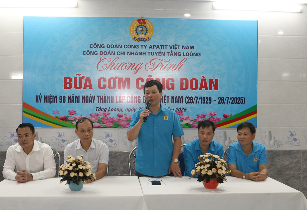 Phát biểu tại chương trình, đồng chí Nguyễn Huy Thông bày tỏ niềm vui khi được tham dự “Bữa cơm Công đoàn” cùng tập thể cán bộ, công nhân viên. Đồng chí ghi nhận và đánh giá cao những nỗ lực, sáng kiến, tinh thần đoàn kết, vượt khó của tập thể các chi nhánh trong việc bảo đảm thiết bị, duy trì sản xuất ổn định, đóng góp tích cực vào sự phát triển chung của Công ty TNHH MTV Apatit Việt Nam.