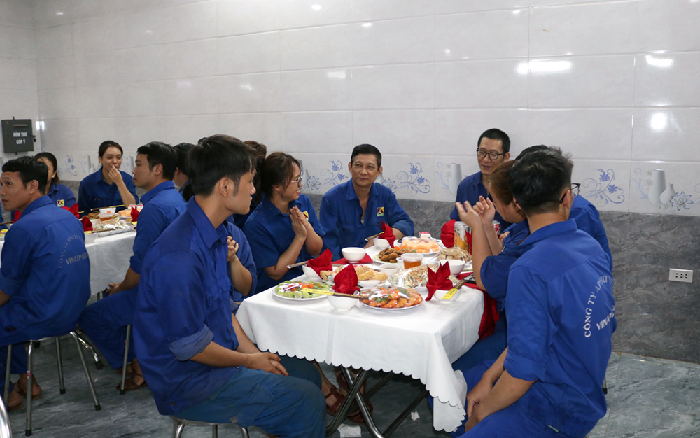 Điểm nhấn đặc biệt là suất ăn của gần 1.900 người lao động được nâng giá trị thêm 150.000 đồng/suất ngoài định mức hiện hành và tuyệt đối không cấp phát tiền mặt. Nhờ đó, chất lượng bữa ăn ca được cải thiện rõ rệt, vừa đảm bảo an toàn vệ sinh thực phẩm, vừa giúp người lao động có thêm dinh dưỡng để tái tạo sức lao động.
