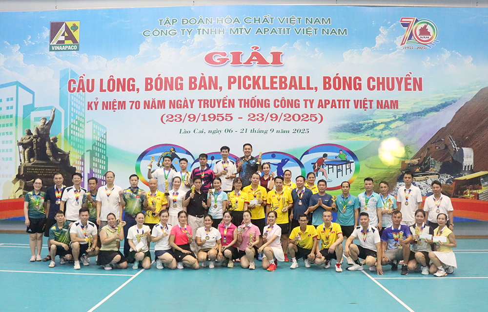 Hòa trong không khí thi đua sôi nổi chào mừng 70 năm ngày truyền thống Công ty Apatit Việt Nam (23/9/1955 – 23/9/2025) và 67 năm ngày Bác Hồ lên thăm Lào Cai (23/9/1958 – 23/9/2025), từ ngày 06/9 đến ngày 21/9/2025, Công ty Apatit Việt Nam đã tổ chức giải thể thao truyền thống với quy mô rộng lớn, thu hút sự tham gia của đông đảo cán bộ, công nhân viên.