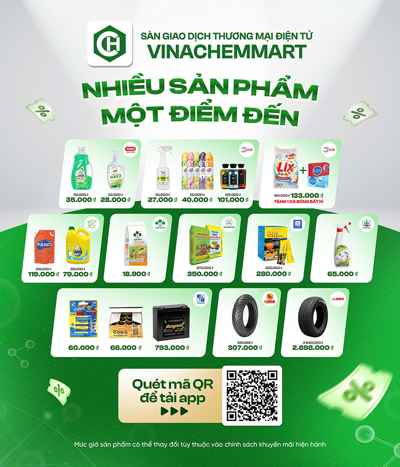 Gian hàng được bố trí thành các phân khu trưng bày chính theo lĩnh vực sản xuất của Vinachem. Trong đó, khu vực chất tẩy rửa gia dụng giới thiệu các sản phẩm bột giặt, nước giặt và hoá mỹ phẩm thuộc các thương hiệu LIX, HASO, CFC, VIIC; khu cao su kỹ thuật trưng bày săm, lốp ô tô do DRC, Casumina, SRC sản xuất; khu pin – ắc quy thể hiện các dòng sản phẩm. Sự kết hợp này giúp minh chứng cho hệ thống sản phẩm đa dạng do Vinachem phát triển và quảng bá uy tín thương hiệu trên thị trường trong và ngoài nước. Đặc biệt, các sản phẩm tiêu dùng kể trên đều được niêm yết trên ứng dụng thương mại điện tử Vinachemmart, tạo điều kiện cho người tiêu dùng tiếp cận và mua sắm trực tuyến thuận tiện.