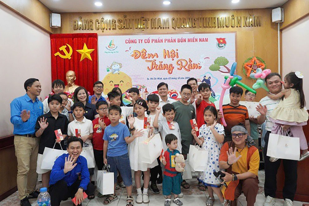 Trong các ngày 03, 04, 05/10/2025, Đoàn Thanh niên Công ty Cổ phần Phân bón Miền Nam tổ chức chương trình “Đêm hội trăng Rằm” dành cho con, em cán bộ, công nhân viên tại bốn đơn vị: Văn phòng Công ty, Nhà máy Super Phốt Phát Long Thành, Nhà máy Phân bón Hiệp Phước và Nhà máy Phân bón Cửu Long. Chương trình triển khai theo kế hoạch công tác Đoàn và phong trào Thanh niên năm 2025.