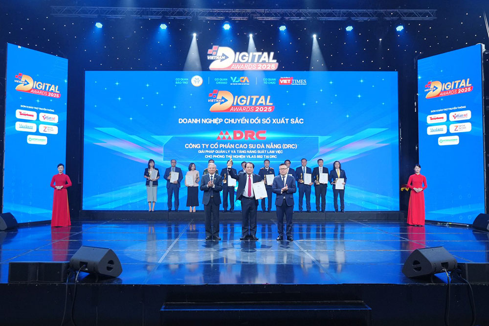 Ngày 8/10/2025, Công ty cổ phần Cao su Đà Nẵng (DRC) vinh dự được vinh danh tại Giải thưởng Chuyển đổi số Việt Nam – Vietnam Digital Awards (VDA) 2025, chính thức ghi danh vào hàng ngũ những doanh nghiệp tiên phong trong công cuộc chuyển đổi số toàn diện.