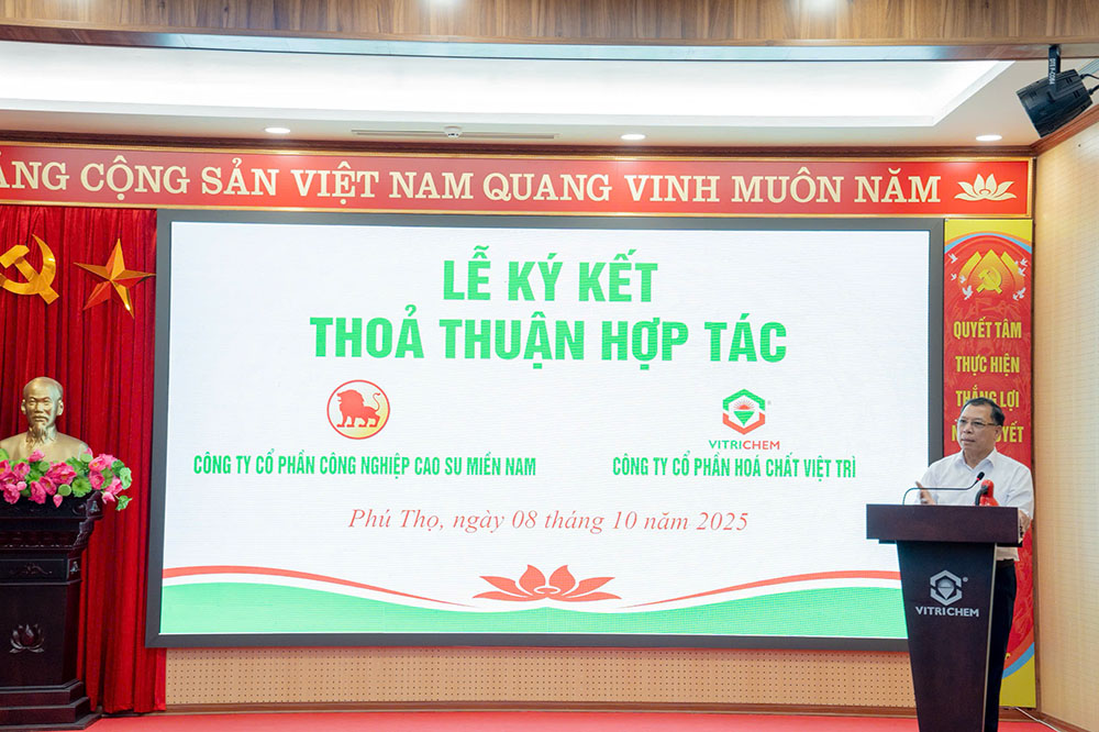 Ngày 08 tháng 10 năm 2025, Công ty Cổ phần Hóa chất Việt Trì và Công ty Cổ phần Công nghiệp Cao su miền Nam – hai đơn vị thành viên thuộc Tập đoàn Hóa chất Việt Nam, đã tổ chức Lễ ký kết Thỏa thuận hợp tác. Sự kiện đánh dấu bước tiến mới trong mối quan hệ hợp tác toàn diện giữa hai đơn vị, hướng tới mục tiêu khai thác tối đa tiềm năng, thế mạnh, cùng đóng góp vào sự phát triển bền vững của Tập đoàn. Tham dự sự kiện, có đại diện lãnh đạo Đảng ủy, Hội đồng quản trị, Ban Tổng Giám đốc cùng các cán bộ chủ chốt của hai đơn vị.