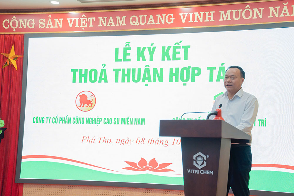 Đồng chí Nguyễn Đình Khoát, Bí thư Đảng ủy, Tổng giám đốc Công ty Cổ phần Công nghiệp Cao su miền Nam khẳng định: Việc ký kết hợp tác với Công ty Cổ phần Hóa chất Việt Trì nhằm tận dụng hiệu quả nguồn lực, mở rộng thị trường, đồng thời góp phần thực hiện mục tiêu chung của Tập đoàn là tăng cường liên kết giữa các đơn vị thành viên, nâng cao năng lực cạnh tranh và phát triển bền vững.