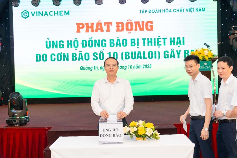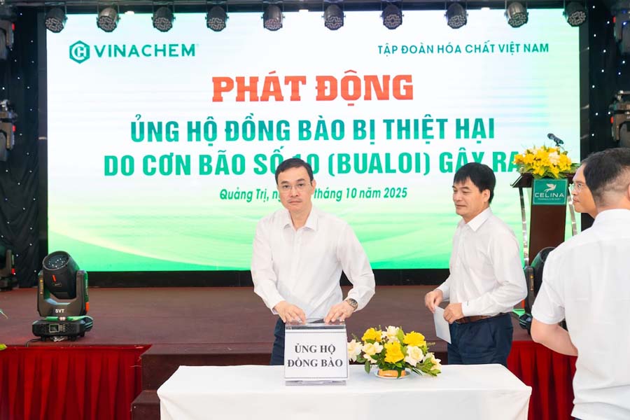 Hưởng ứng lời kêu gọi của Ủy ban Trung ương Mặt trận Tổ quốc Việt Nam và phát huy truyền thống đoàn kết, “tương thân tương ái” của dân tộc, chiều ngày 3/10/2025, tại Quảng Trị, Tập đoàn Hóa chất Việt Nam (Vinachem) đã tổ chức Lễ phát động ủng hộ đồng bào bị thiệt hại nặng nề do cơn bão số 10.