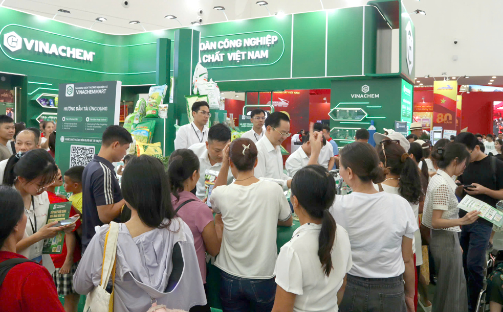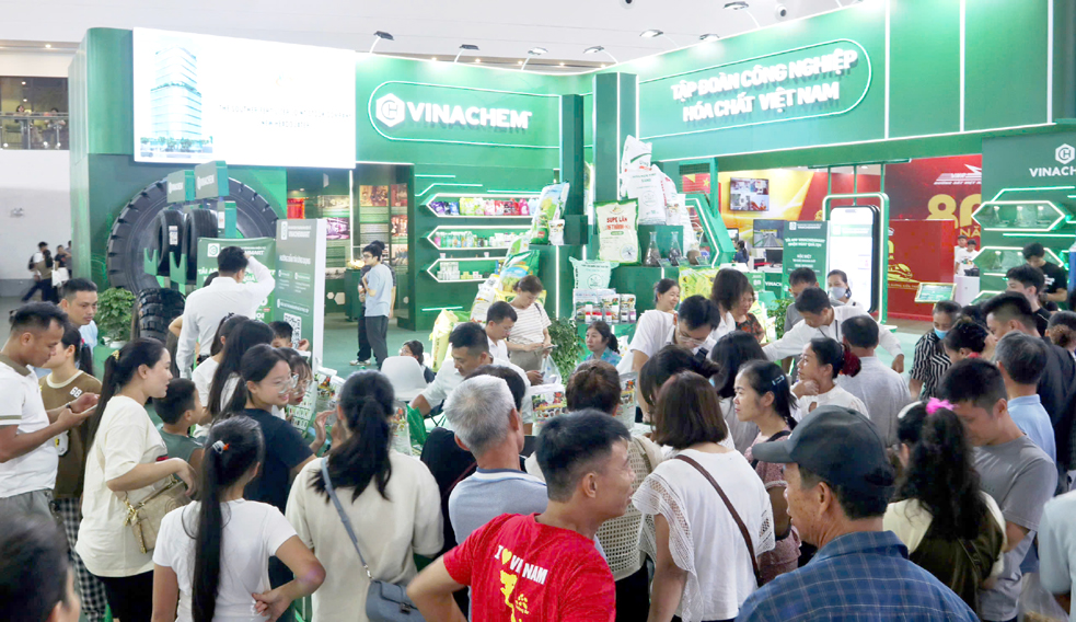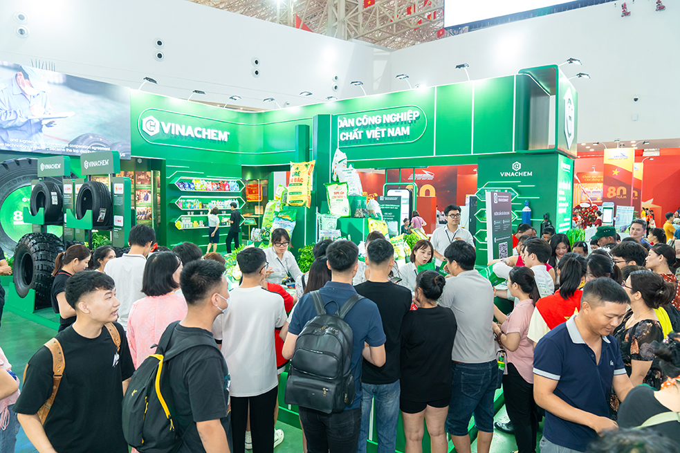 Trong không gian đó, gian hàng của Tập đoàn Hóa chất Việt Nam (Vinachem) trở thành một điểm nhấn đặc biệt, thu hút hàng triệu lượt khách đến tham quan, tìm hiểu sản phẩm và công nghệ mới.
