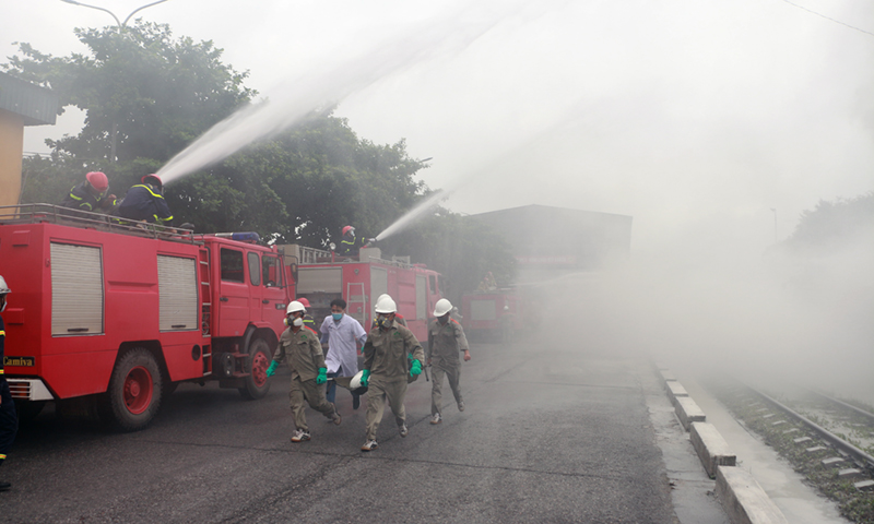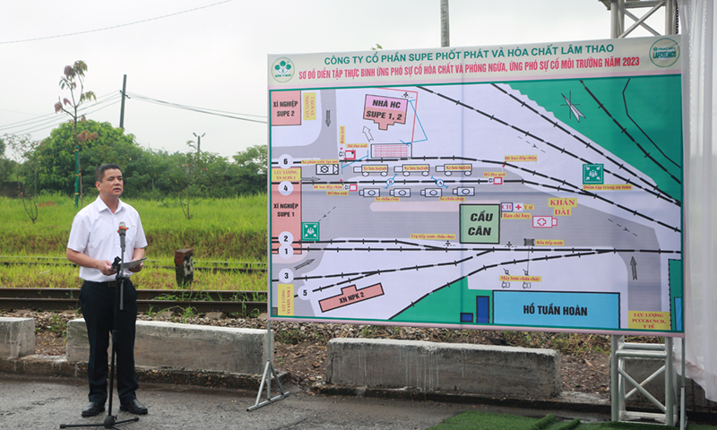 Phát biểu tại buổi diễn tập, đồng chí Phạm Thanh Tùng, Tổng giám đốc Công ty nhấn mạnh, là một doanh nghiệp sản xuất kinh doanh phân bón và hóa chất có quy mô lớn, Công ty luôn ý thực được nguy cơ tiềm ẩn gây sự cố hóa chất, sự cố môi trường có thể xảy ra. Do đó trong những năm qua, bên cạnh việc chú trọng đẩy mạnh phát triển sản xuất kinh doanh, chăm lo đời sống cho người lao động, Công ty luôn cố gắng nỗ lực đầu tư nhân lực, vật lực cho công tác an toàn hóa chất, bảo vệ môi trường như Công ty đã xây dựng hệ thống cấp nước chữa cháy, vách tường, hệ thống giám sát, đội PCCC chuyên trách, bán chuyên trách, trang bộ 02 xe chữa cháy.