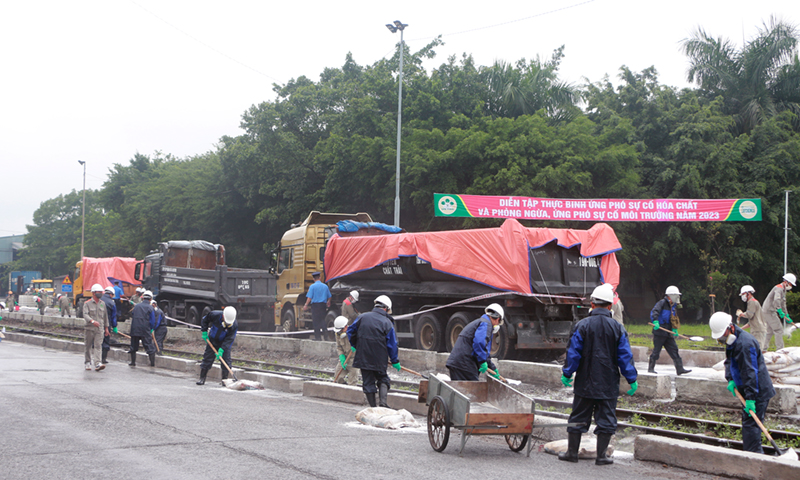 Tham dự Hội nghị, diễn tập thực binh có đồng chí Phùng Quang Hiệp, Tổng giám đốc Tập đoàn Hóa chất Việt Nam; đồng chí Nguyễn Huy Thông, Chủ tịch Công đoàn Công nghiệp Hóa chất Việt Nam cùng hơn 100 học viên là giám đốc, phó giám đốc, các đồng chí phụ trách về môi trường tại các đơn vị thành viên thuộc Tập đoàn.